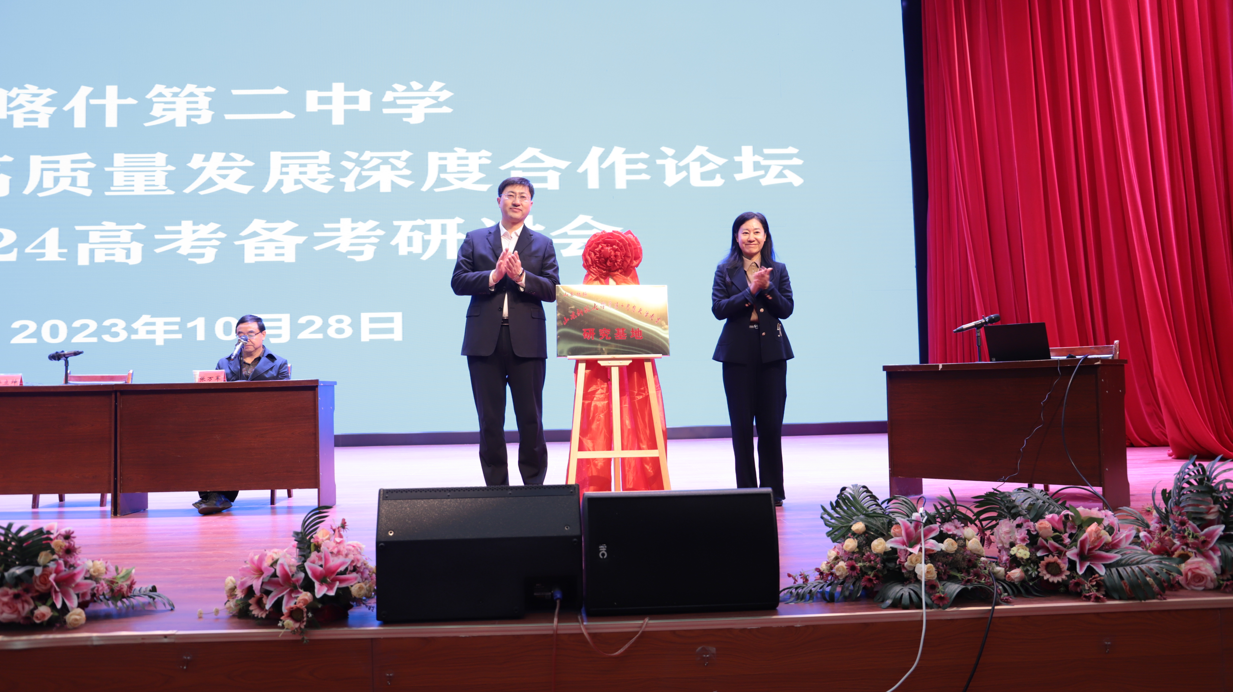 10月28日,“山东援疆山东师范大学党建+思想政治教育研究基地”揭牌仪式在新疆喀什第二中学举行。山东师范大学马克思主义学部党委书记顾大伟,喀什地区教育局党组成员、副局长开赛尔江·阿不力孜,地区教育局副局长王玉龙,喀什第二中学党委书记安立坤,喀什第二中学党委副书记、校长于宏立出席揭牌仪式。